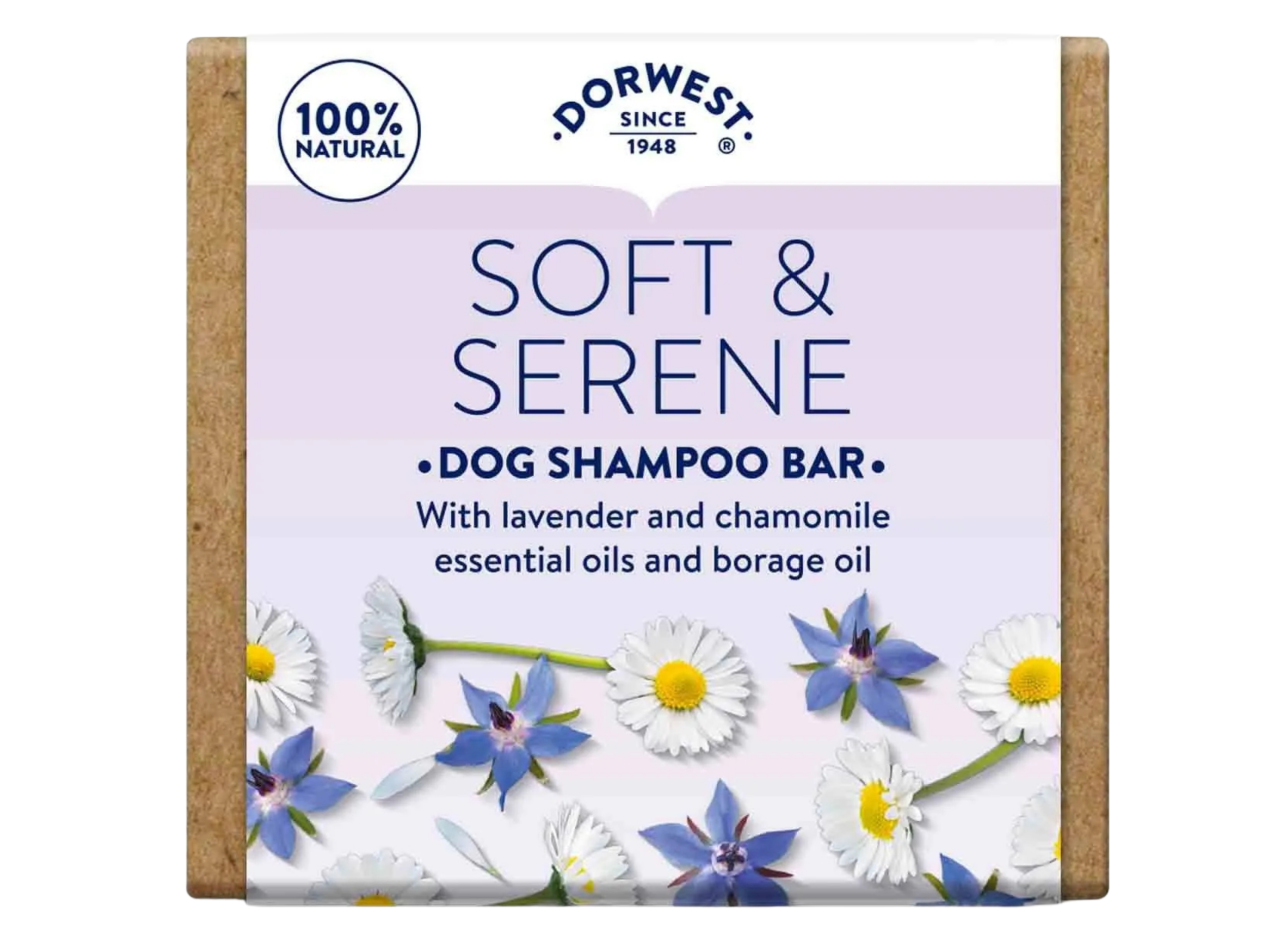Our Soft & Serene Dog Shampoo Bar is specially formulated for dogs prone to itchy, irritated and sensitive skin. With Borage oil and Chamomile and Lavender essential oils, alongside a base blend of Shea butter and Coconut, Sunflower, Castor and Sweet almond oils, these highly nourishing and soothing natural ingredients support optimal skin health, so your dog can wave goodbye to flaky, dry skin.