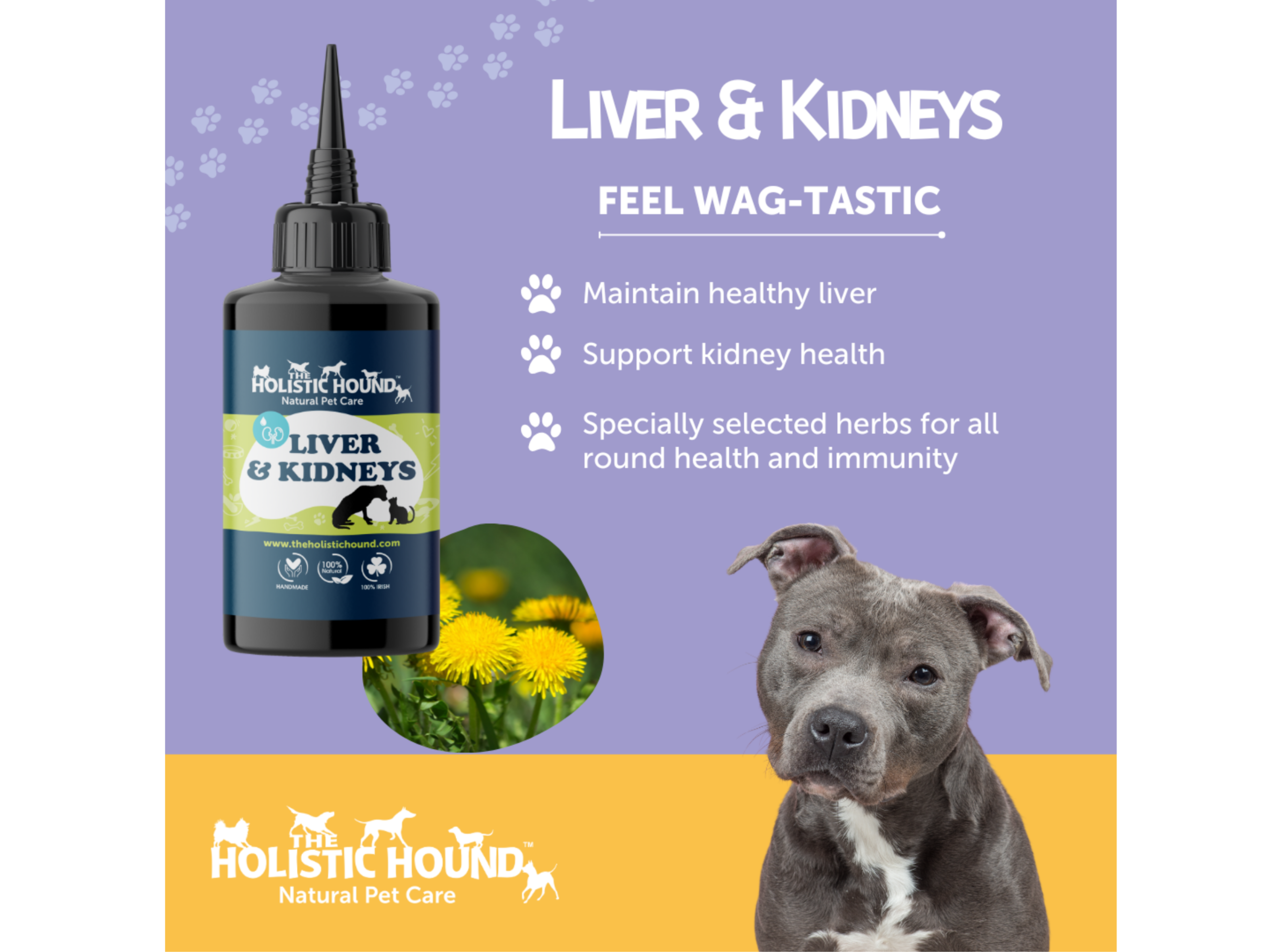 To detoxify your pet’s liver & kidneys, we recommend Holistic Hound Fundamentals Liver & Kidneys herbal tincture.
