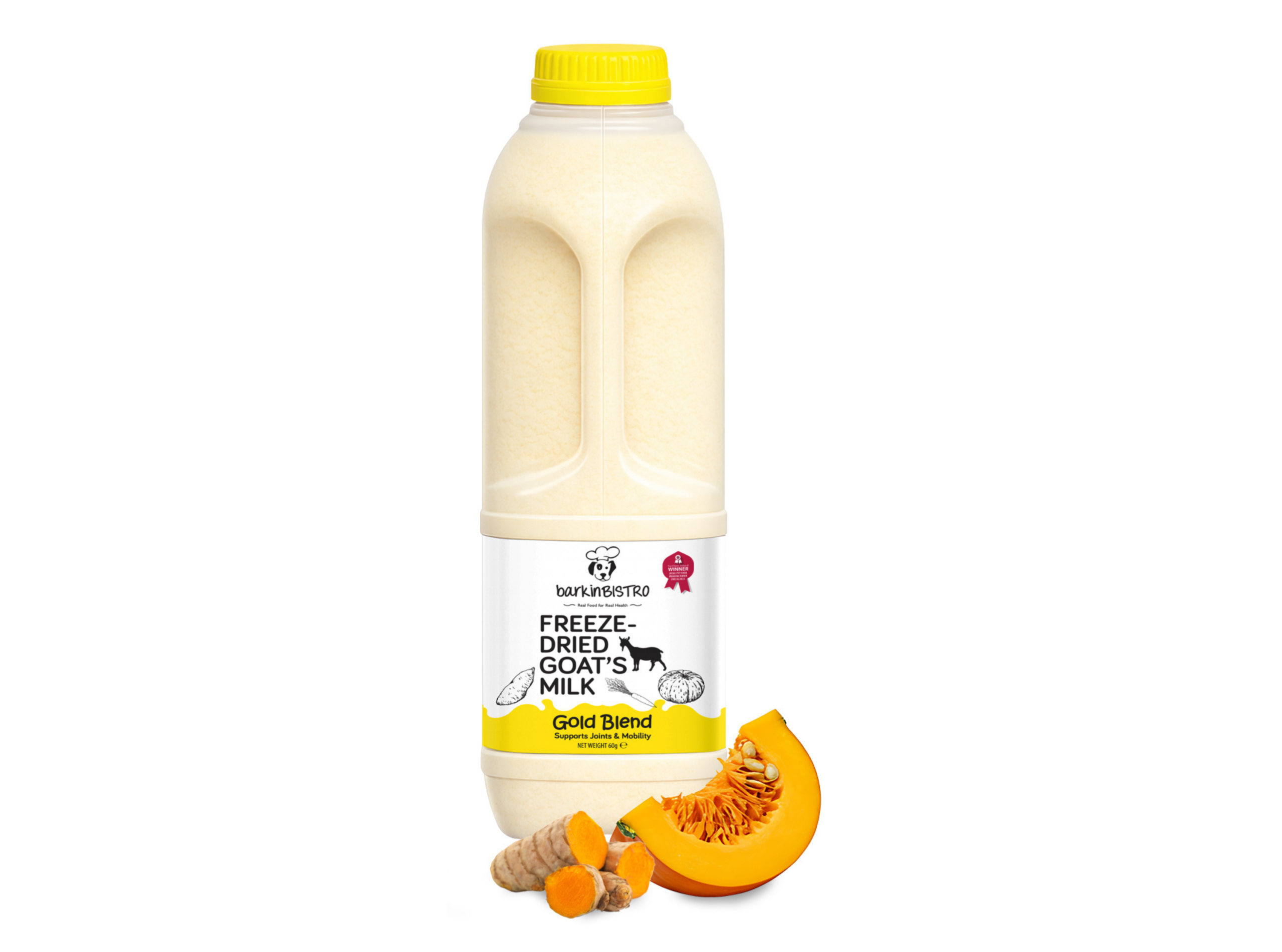 Our Barkin Bistro Freeze-Dried Goat’s Milk – Golden Blend combines the natural goodness of goat’s milk with carefully selected vegetables and warming spices to support digestion and overall wellbeing.