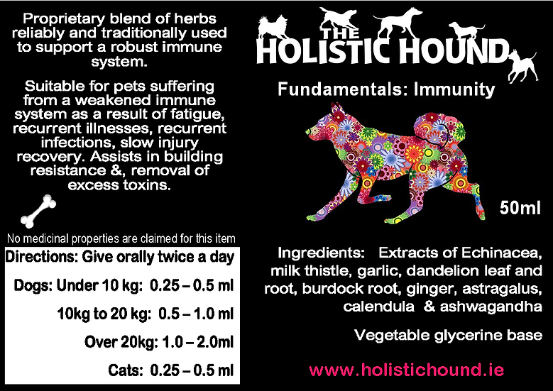 We focus predominantly on immunomodulators, adaptogens and restoratives, rather than immunostimulants; and include anti-inflammatory and detoxification actions. However, care should be taken using this with pets that have autoimmune conditions.