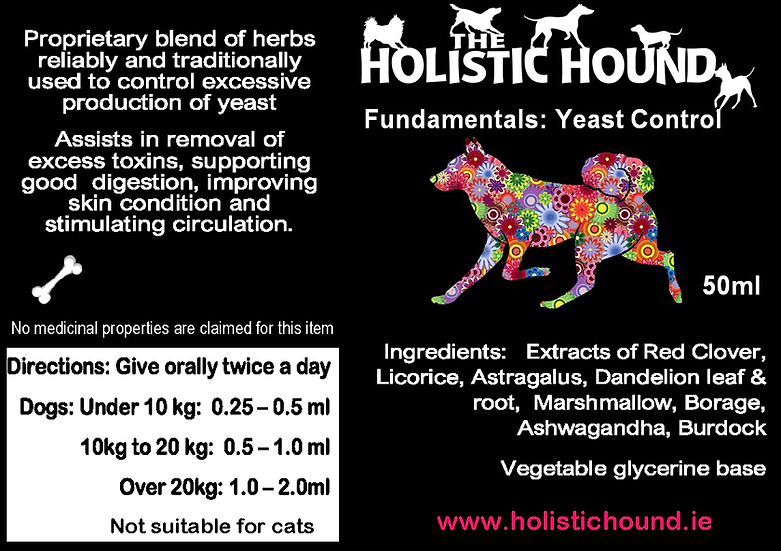 The Holistic Hound Fundamentals Yeast Control tincture is made from a blend of natural herbs that are reliably and traditionally used to control the excessive production of yeast.