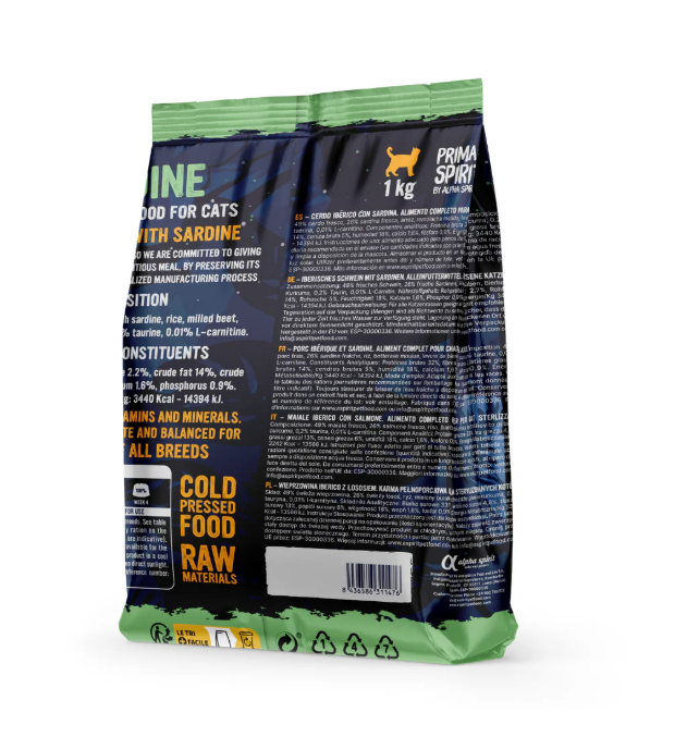 Our Primal Spirit Iberian Sardine Complete Dry Cat Food has been made from 75% fresh ingredients and has been prepared in high-quality conditions resulting in the best possible final product for your pet. It is gluten-free, meat meal free and contains no artificial colours or flavours making it a fantastic choice for your beloved cat.